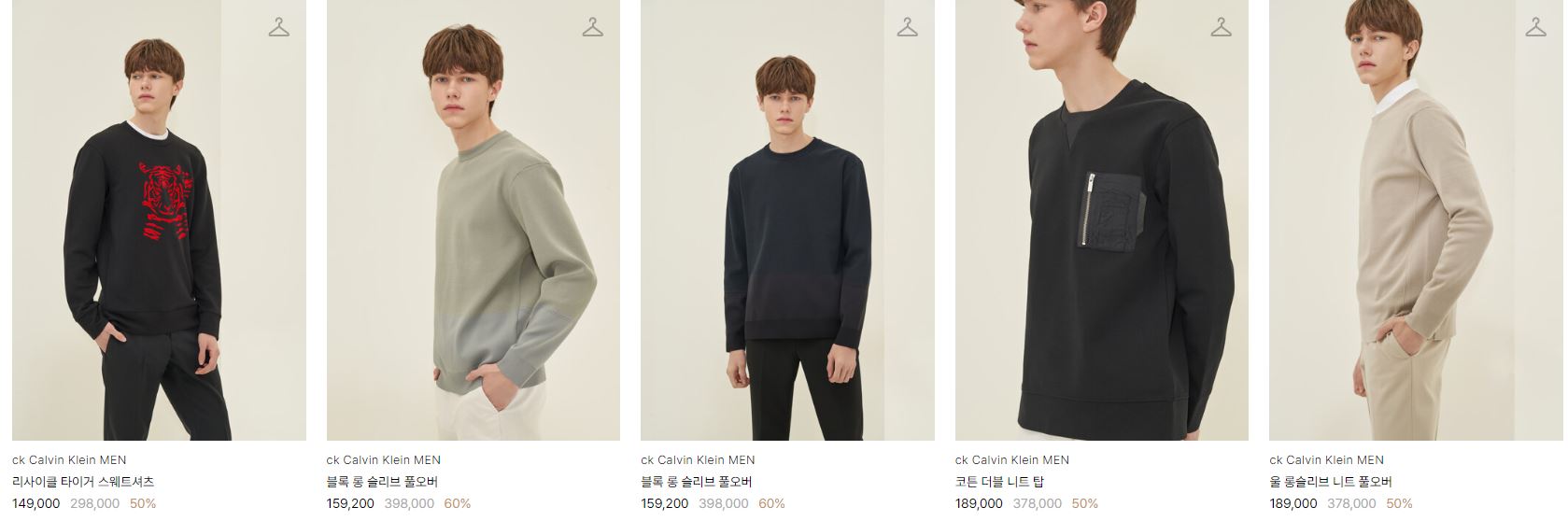 할인 품목 : 티셔츠, 셔츠, 니트 등