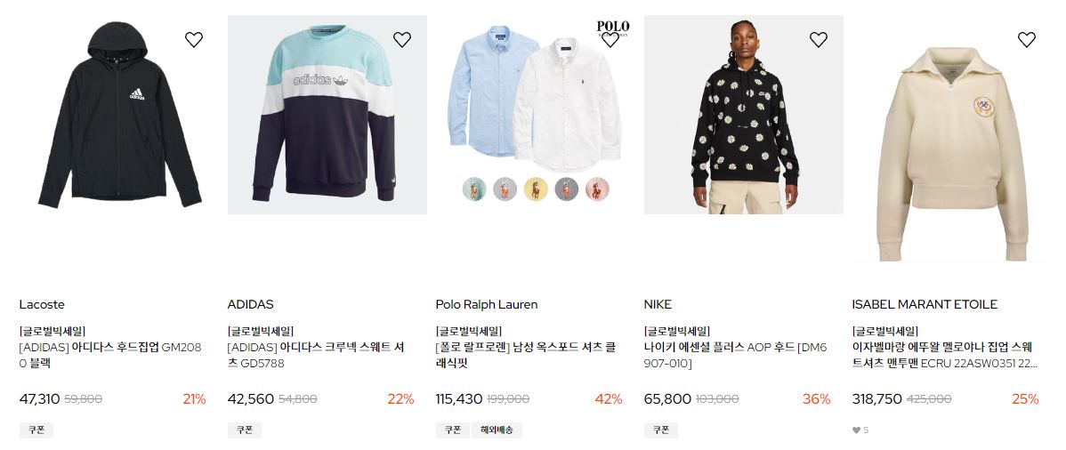 할인 품목 : 의류, 신발, 가방 등