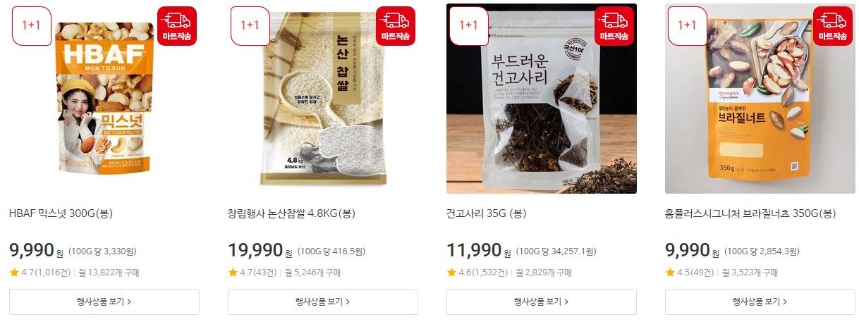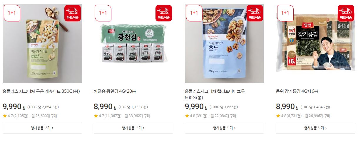 홈플러스 사이트에서 1+1 이벤트를 진행하네요.