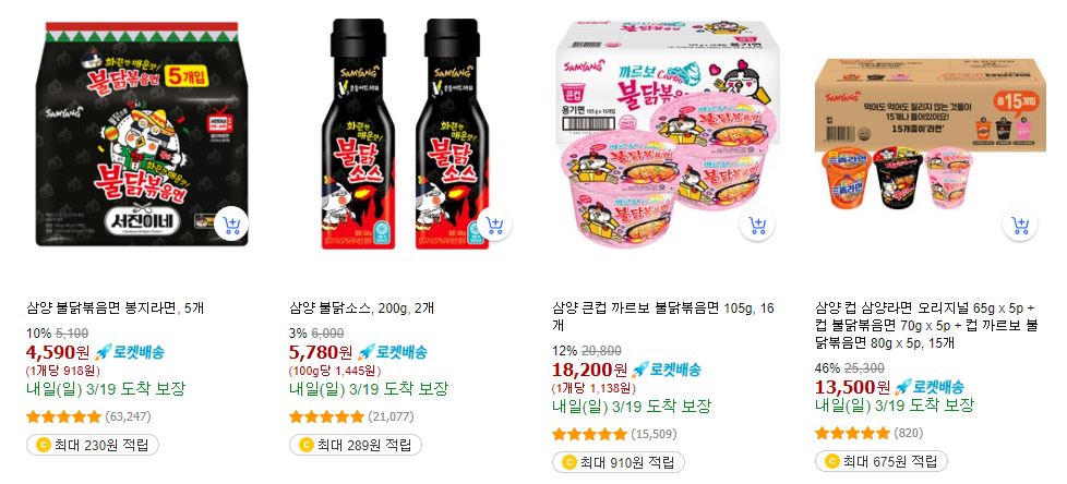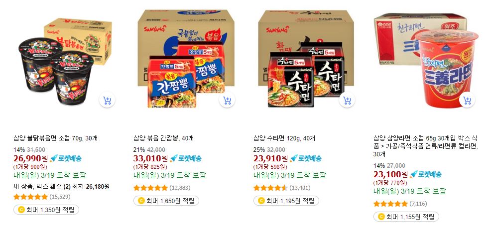 할인 품목 : 불닭볶음면, 간짬뽕 등