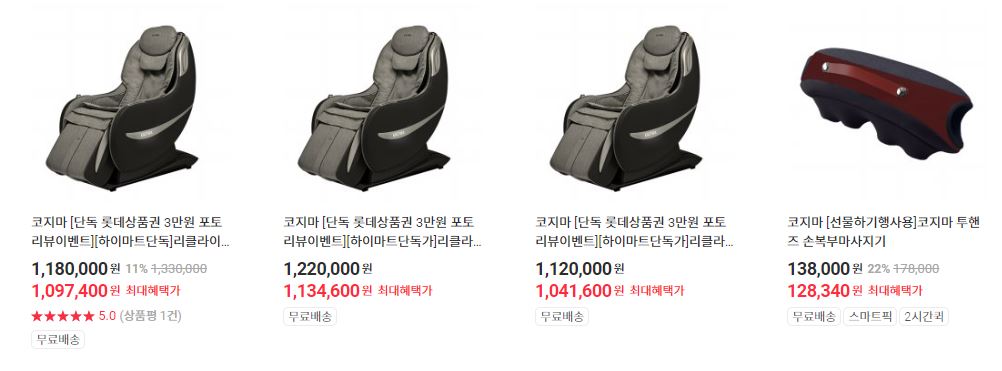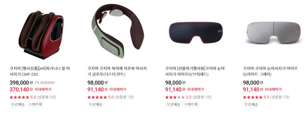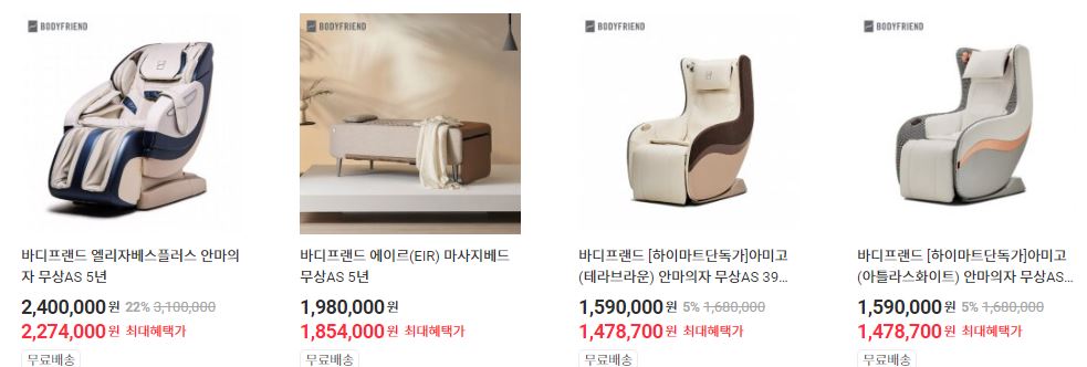 할인 품목 : 안마의자, 마사지기 등