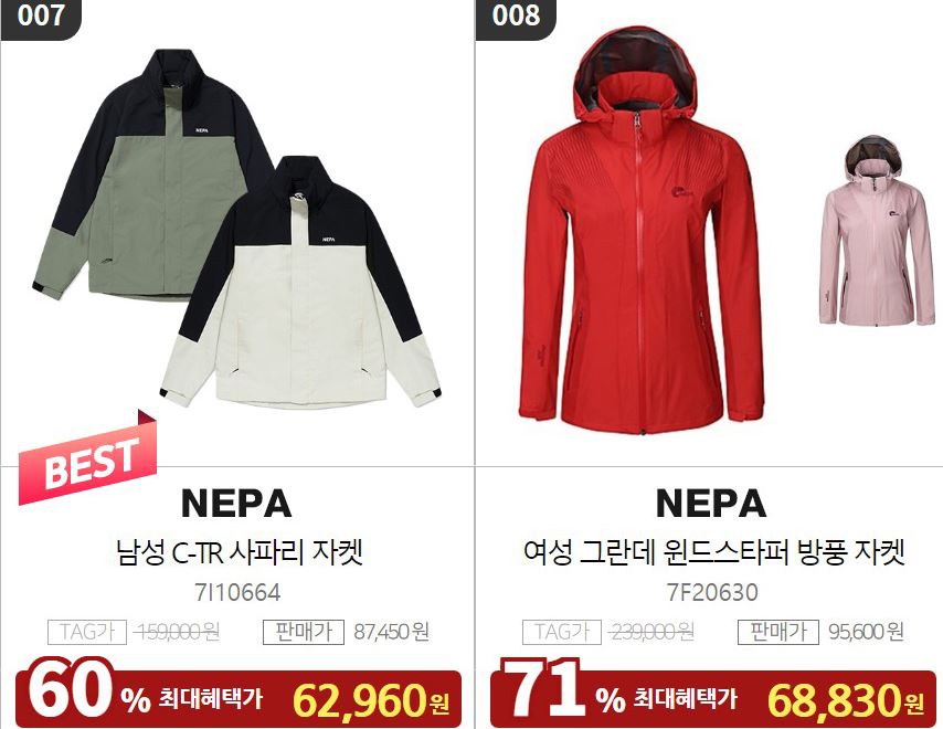 네파 다양한 제품을 할인 판매하네요.