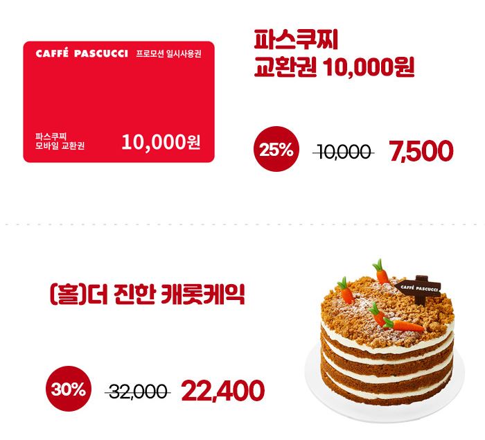 파스쿠찌 다양한 메뉴를 할인 판매하네요.