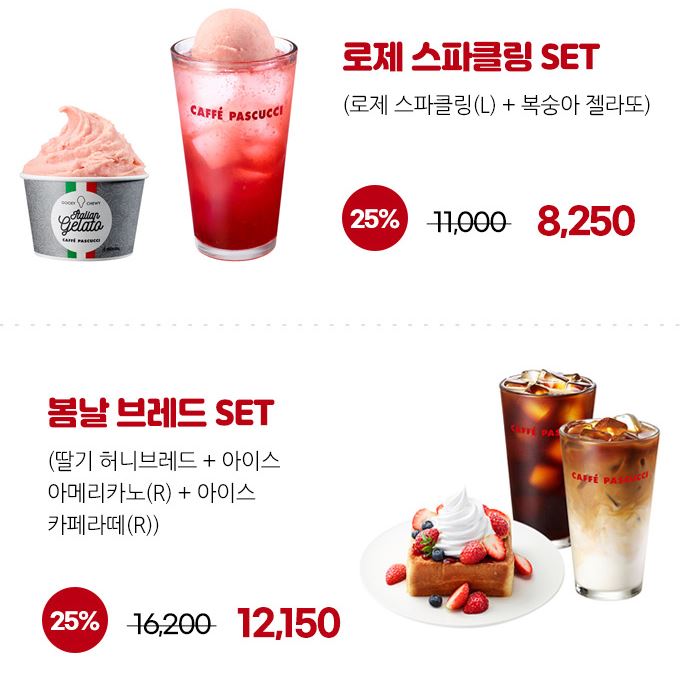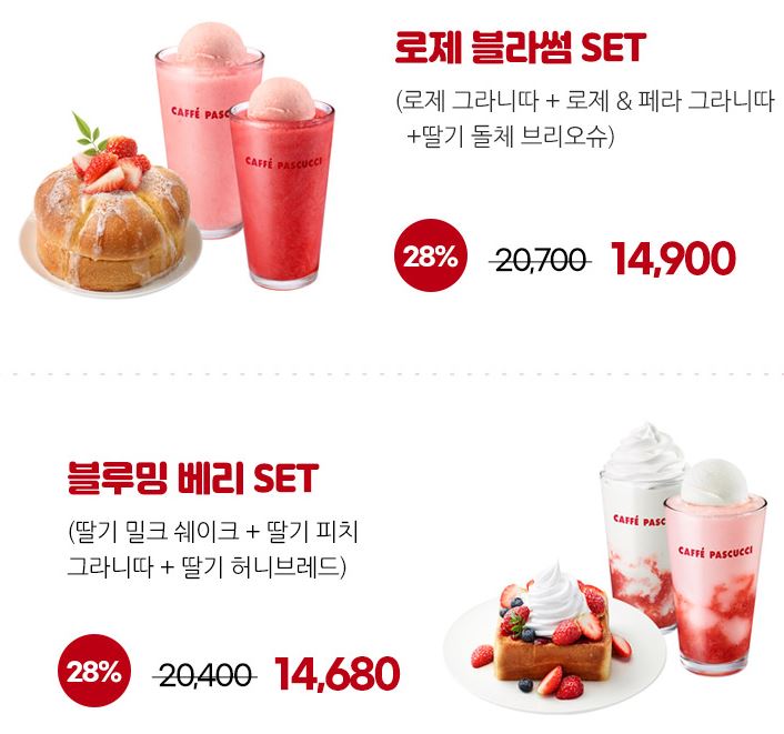 할인 메뉴 : 로제 블라썸 세트, 봄날 브레드 세트 등