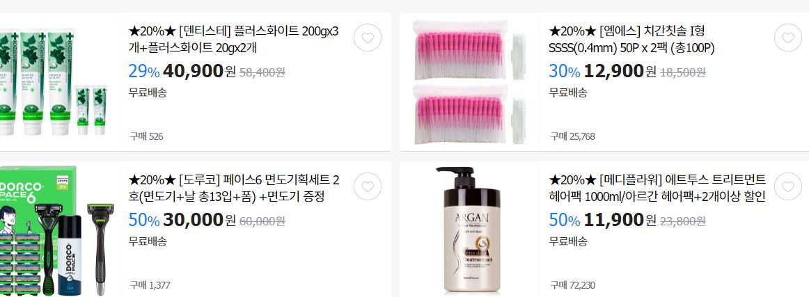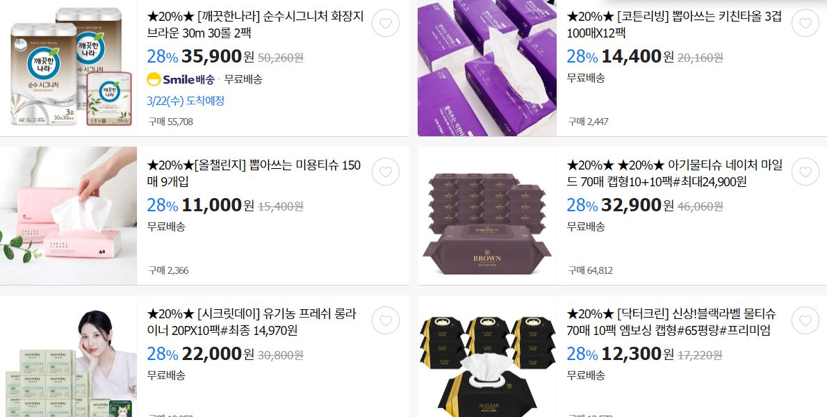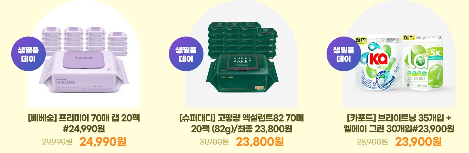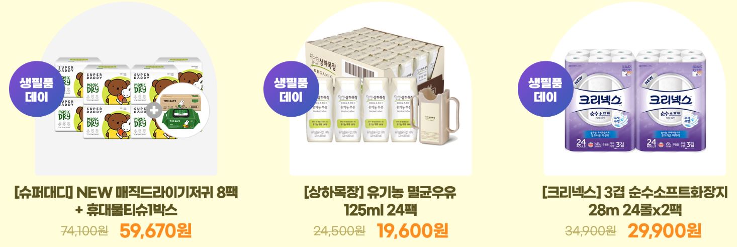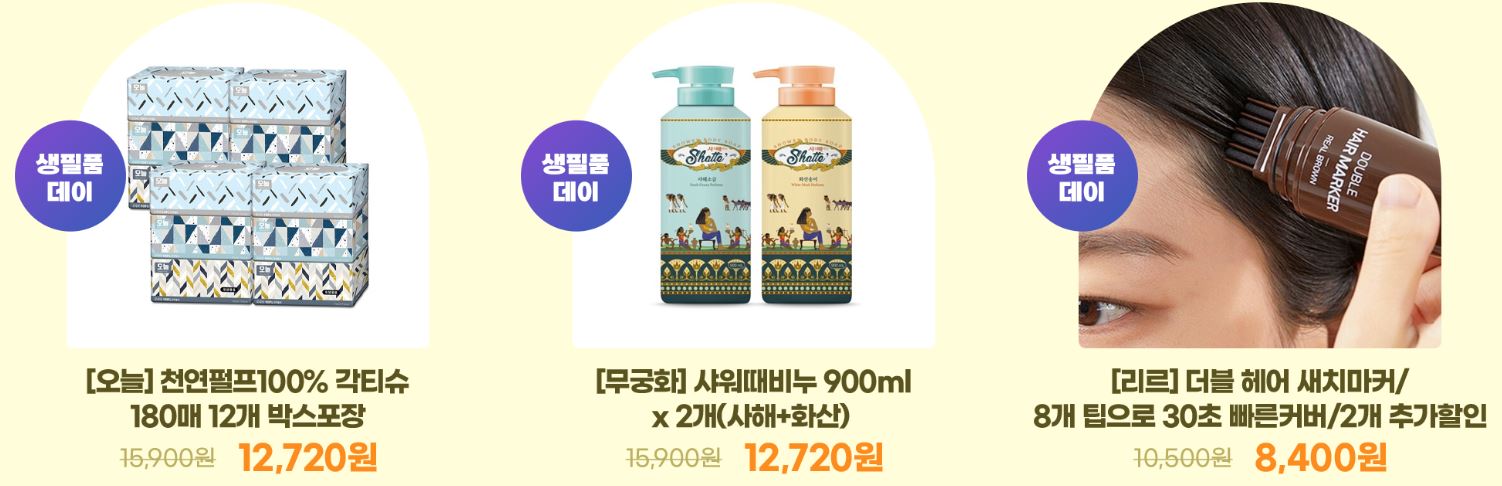 할인 품목 : 화장지, 칫솔, 세제 등