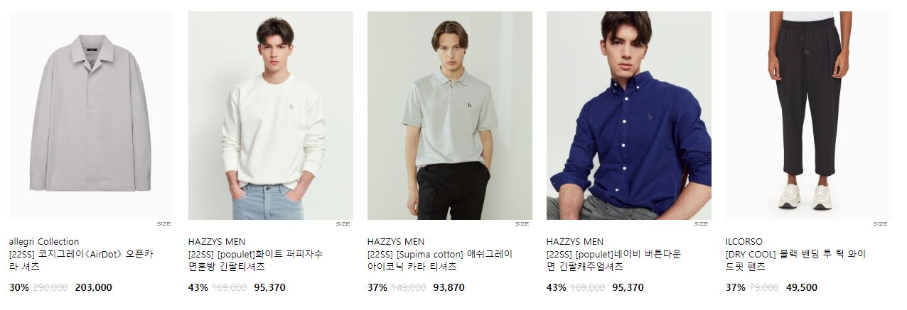할인 품목 : 티셔츠, 셔츠 등