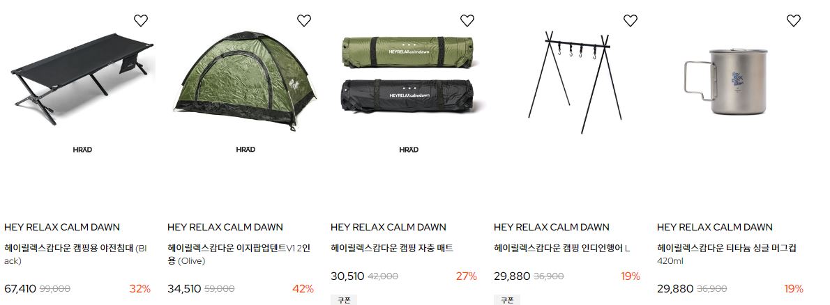 헤이릴렉스캄다운 다양한 제품을 할인 판매하네요.