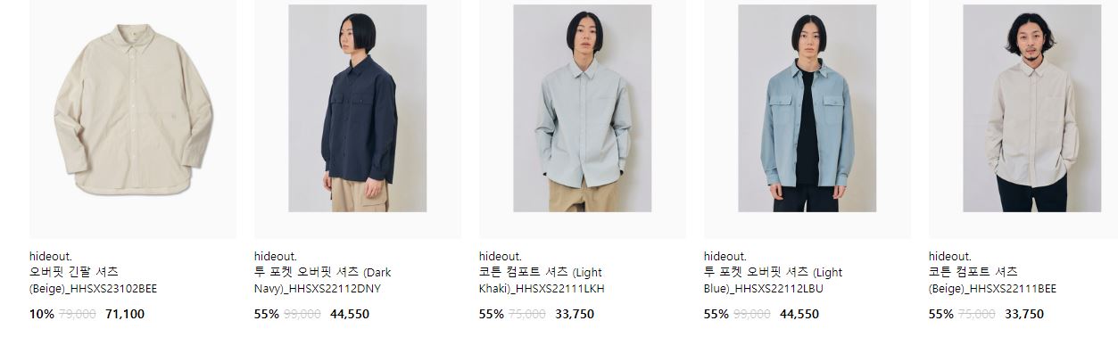 할인 품목 : 자켓, 셔츠, 티셔츠 등