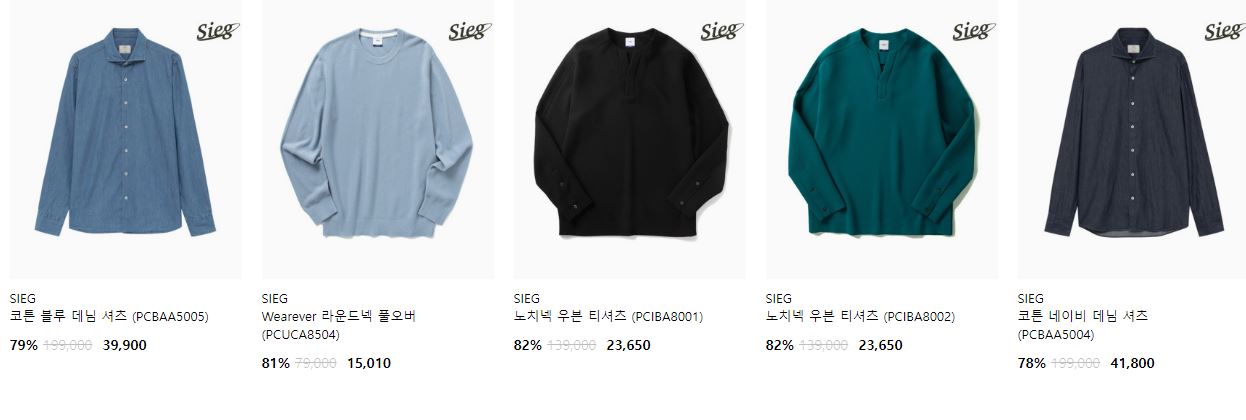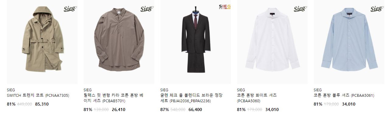 할인 품목 : 셔츠, 티셔츠, 코트 등