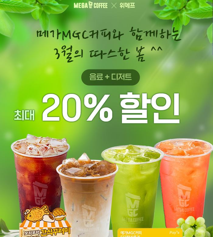 메가MGC커피 최대 20% 할인 정보 포스팅입니다.