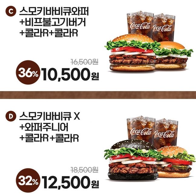 할인 메뉴 : 치즈와퍼주니어, 스모키바비큐와퍼 등