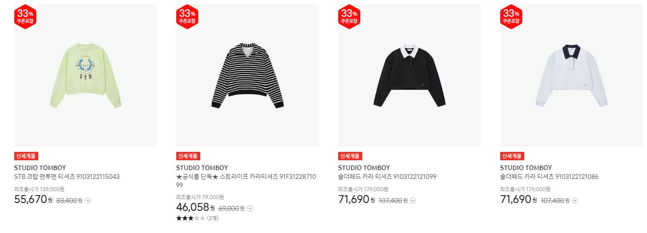 스튜디오 톰보이 다양한 제품을 할인 판매하네요.
