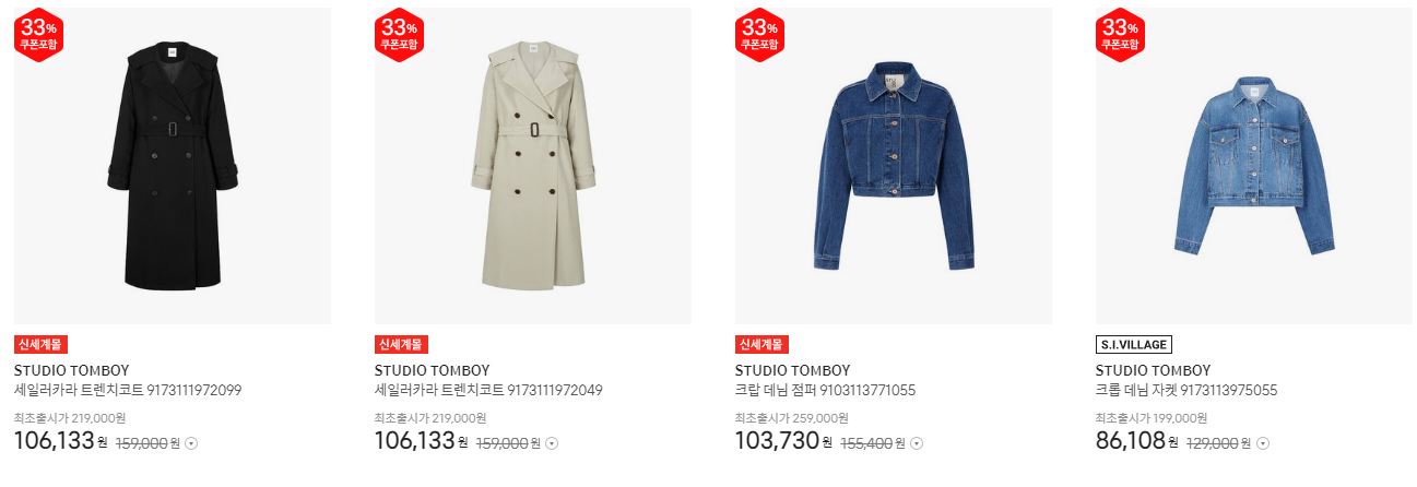 할인 품목 : 자켓, 코트, 티셔츠 등