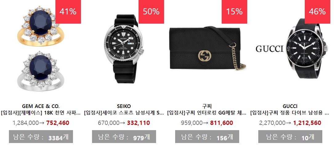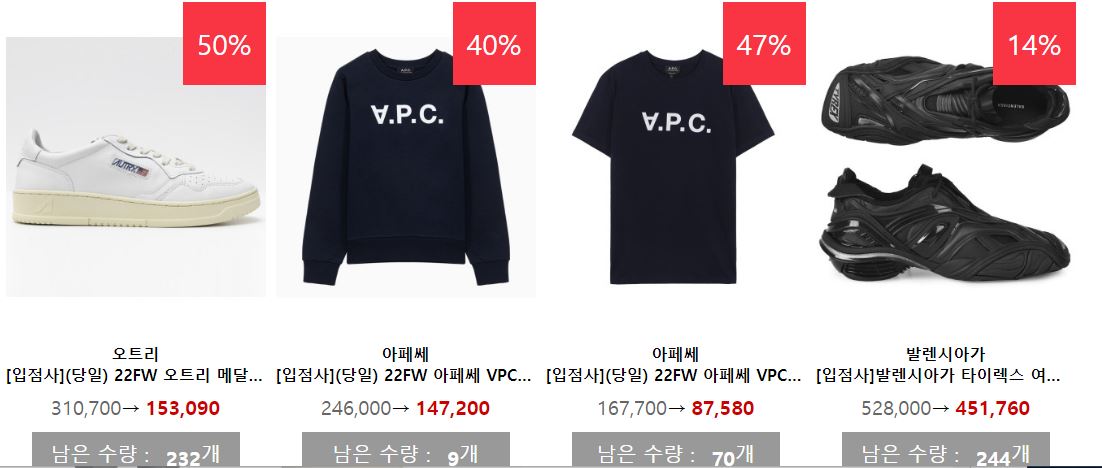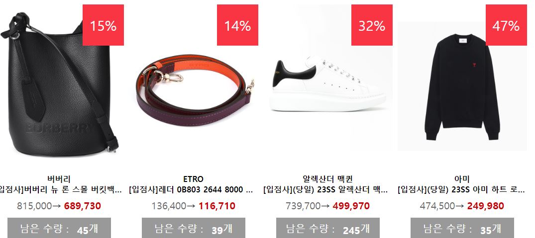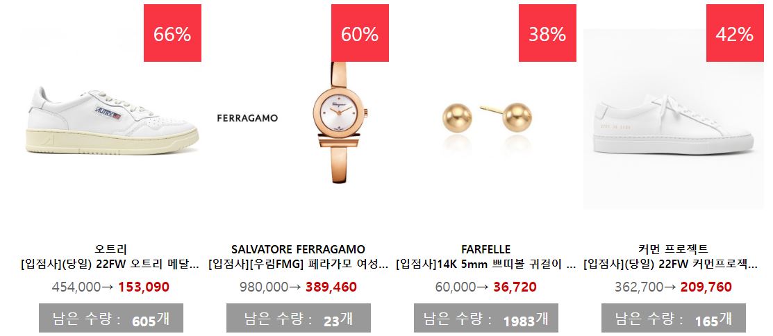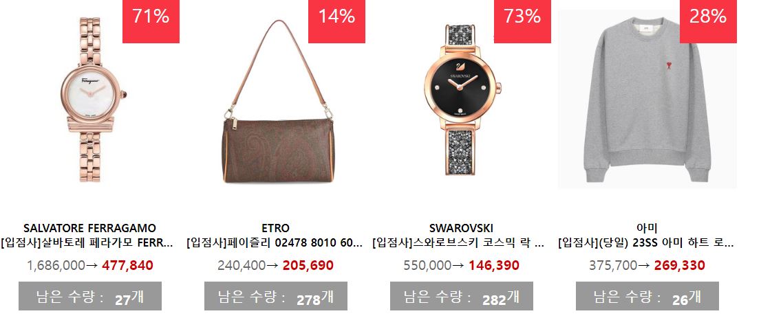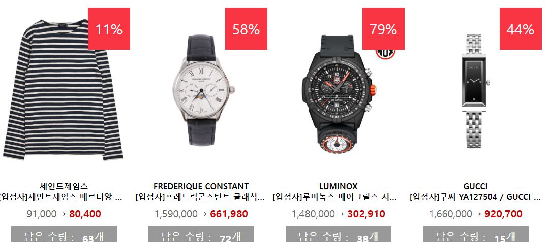 할인 품목 : 의류, 신발, 시계 등