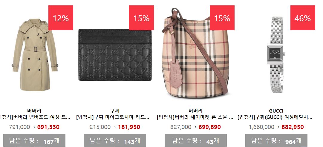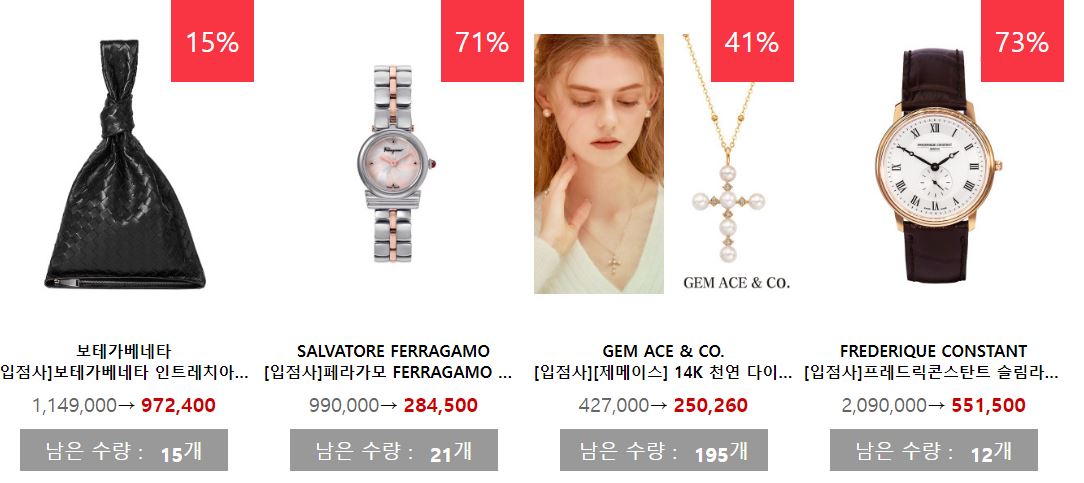 할인 품목 : 의류, 신발, 시계 등