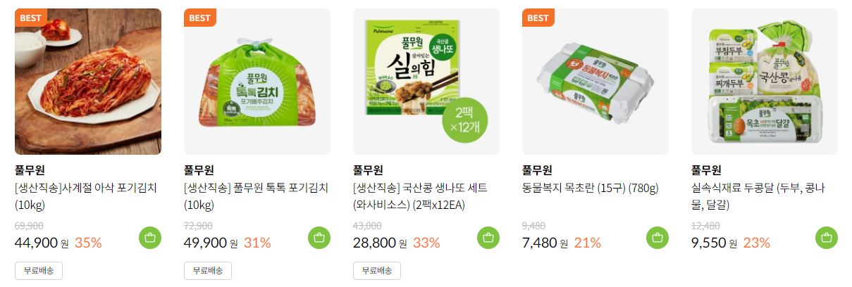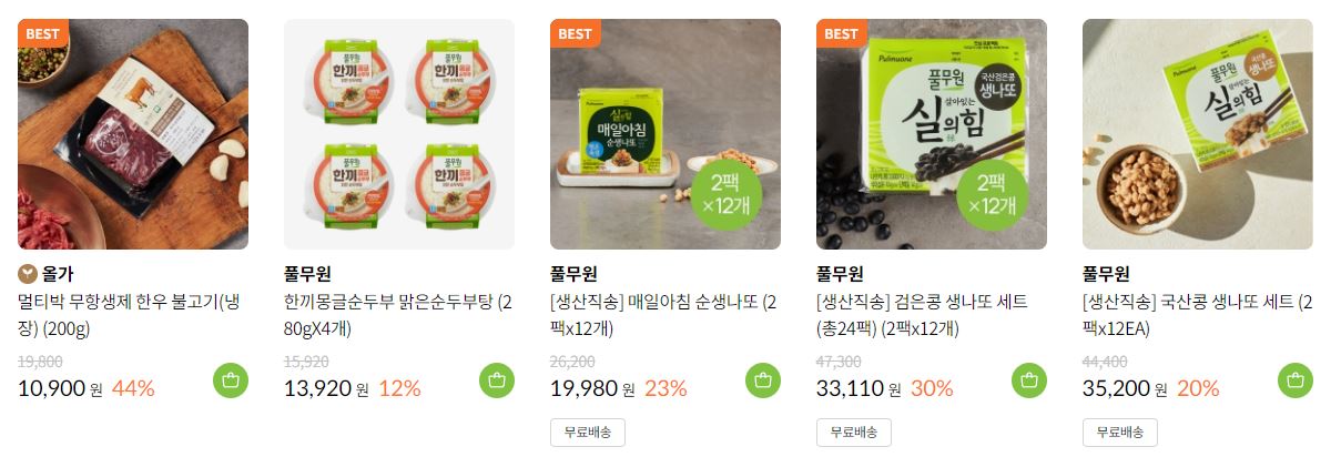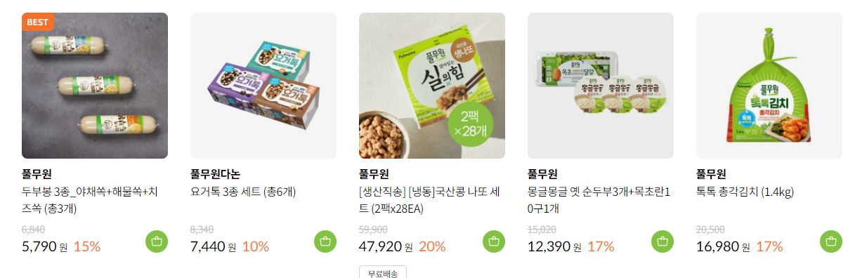 풀무원 다양한 제품을 할인 판매하네요.