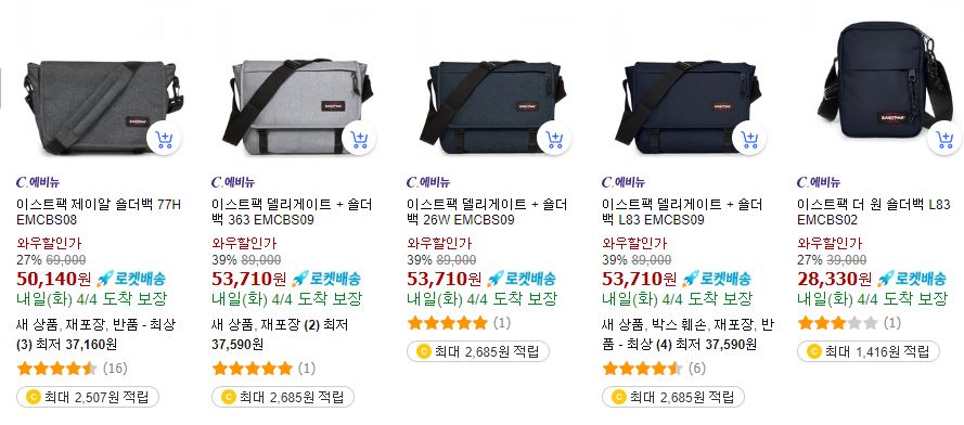이스트팩 다양한 제품을 할인 판매하네요.