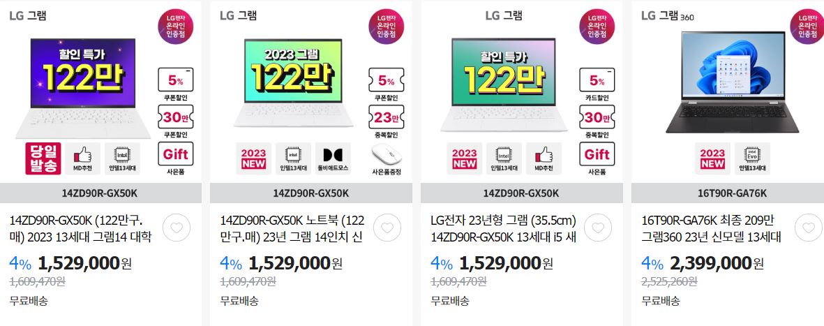 LG전자 다양한 제품을 할인 판매하네요.
