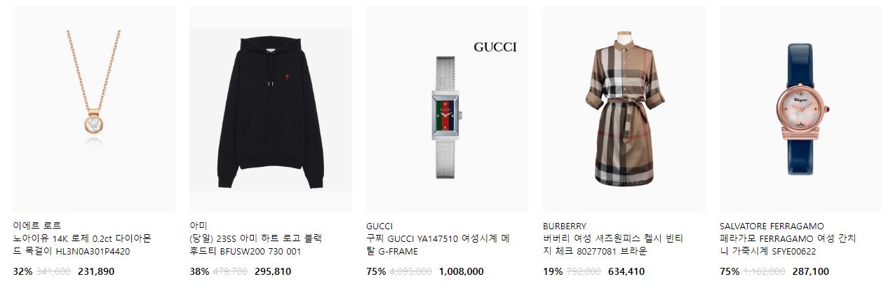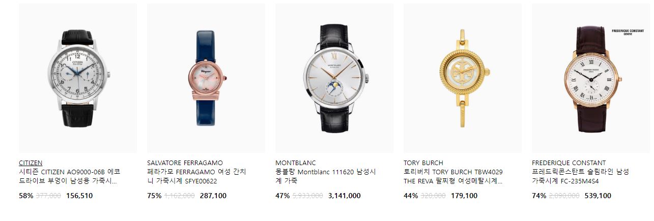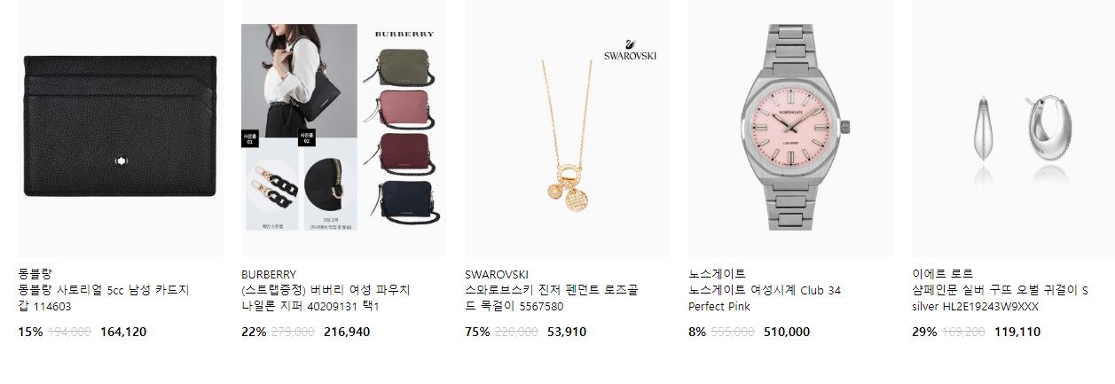 할인 품목 : 시계, 지갑, 가방 등