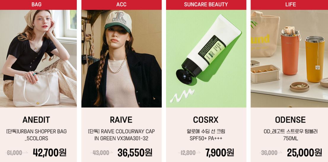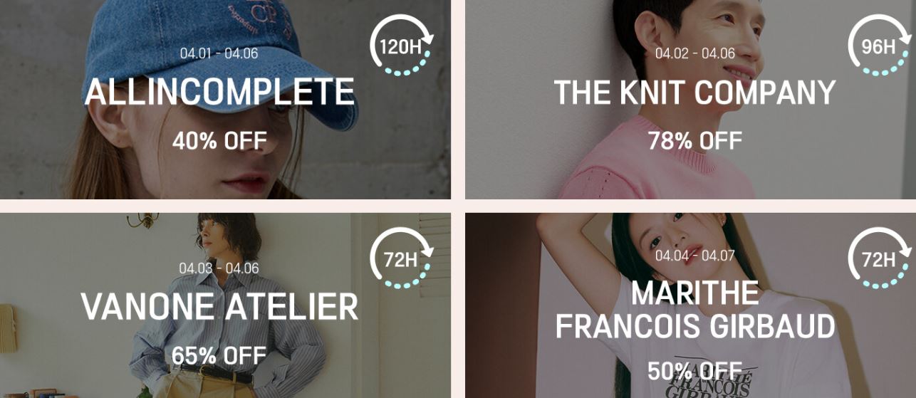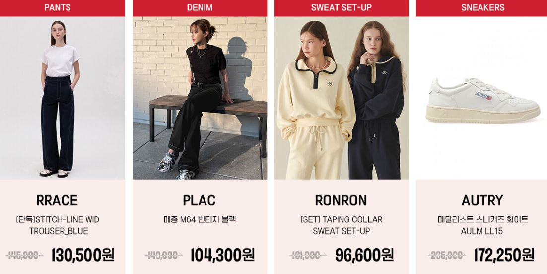 할인 품목 : 의류, 신발, 가방 등