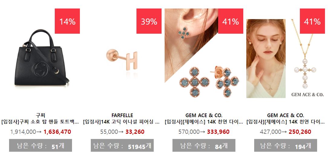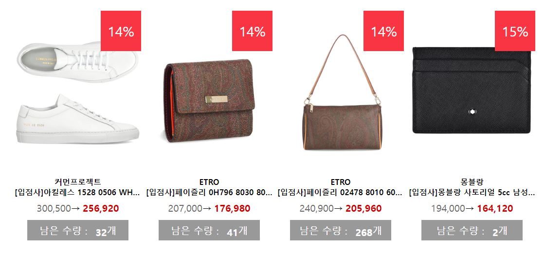 할인 품목 : 가방, 신발, 의류 등