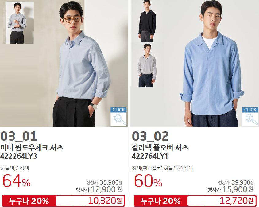 할인 품목 : 맥코트, 윈드브레이커, 셔츠 등