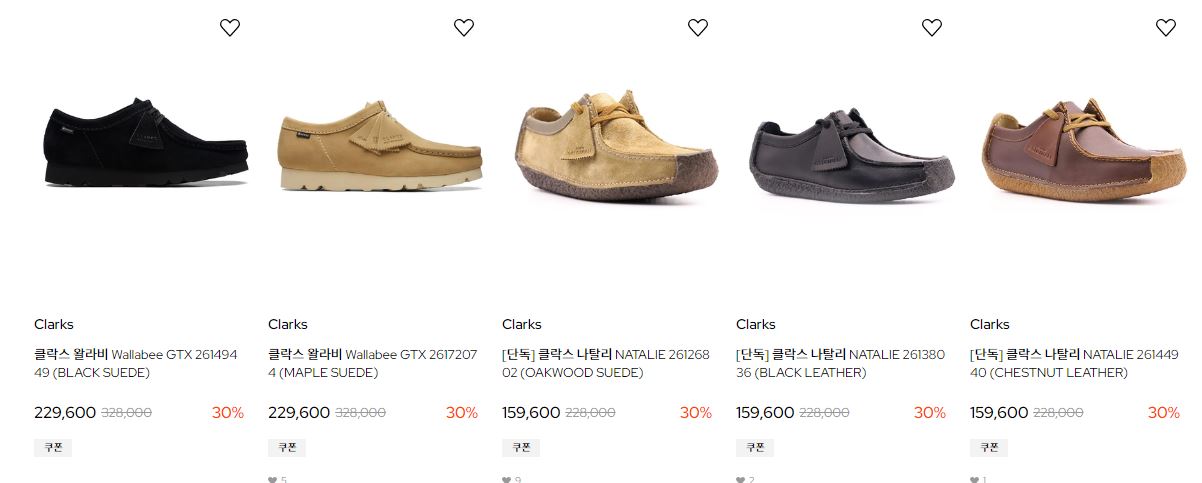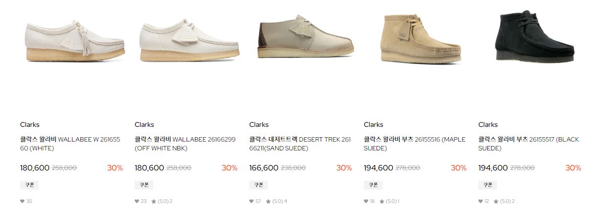 클락스 다양한 제품을 할인 판매하네요.
