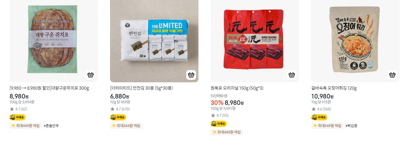할인 품목 : 과일, 육포, 수산물 등