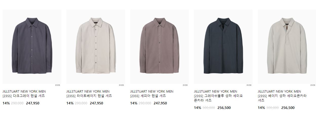 할인 품목 : 셔츠, 티셔츠, 팬츠 등