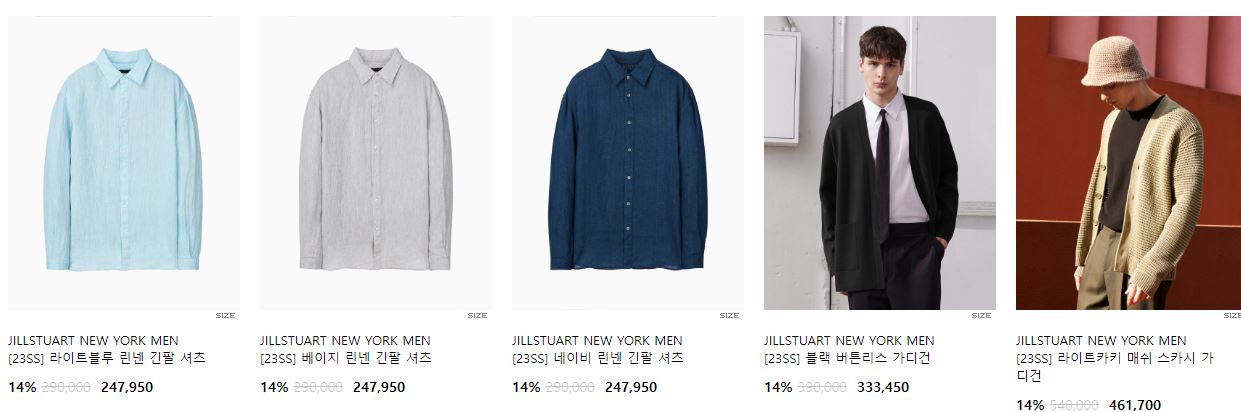 할인 품목 : 셔츠, 티셔츠, 팬츠 등
