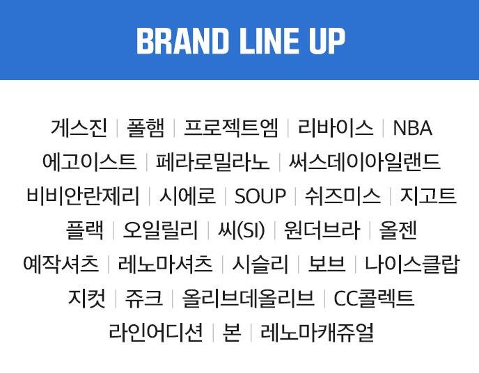 할인 품목 : 티셔츠, 자켓, 팬츠 등
