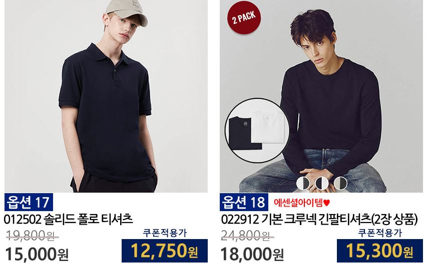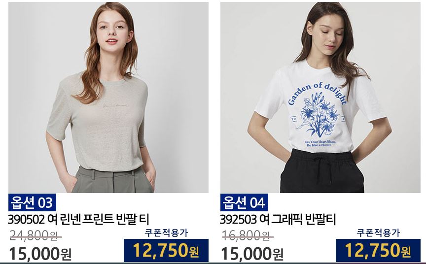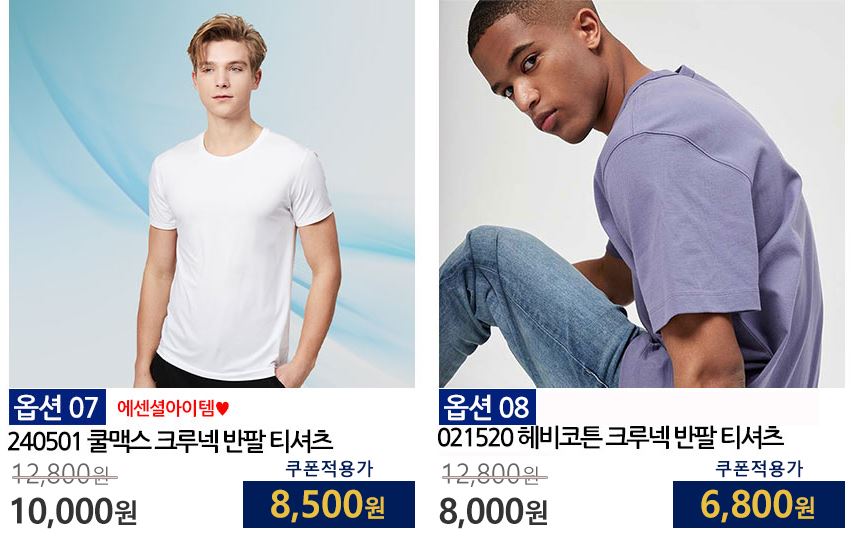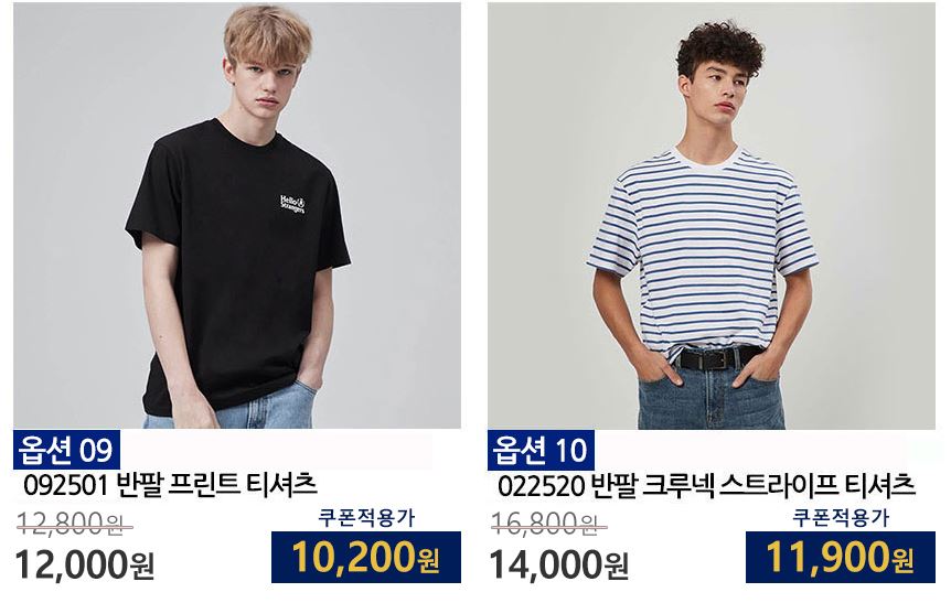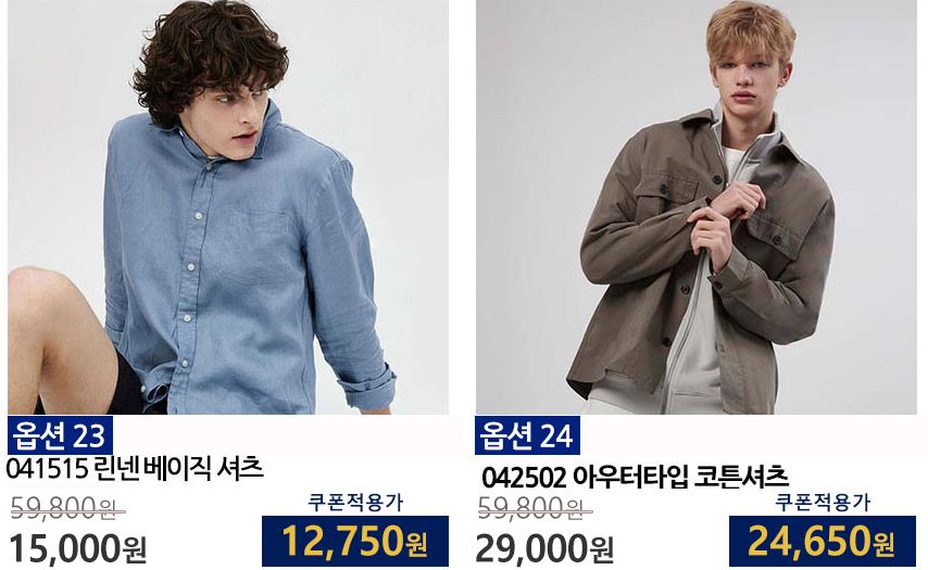 할인 품목 : 티셔츠, 자켓, 셔츠 등