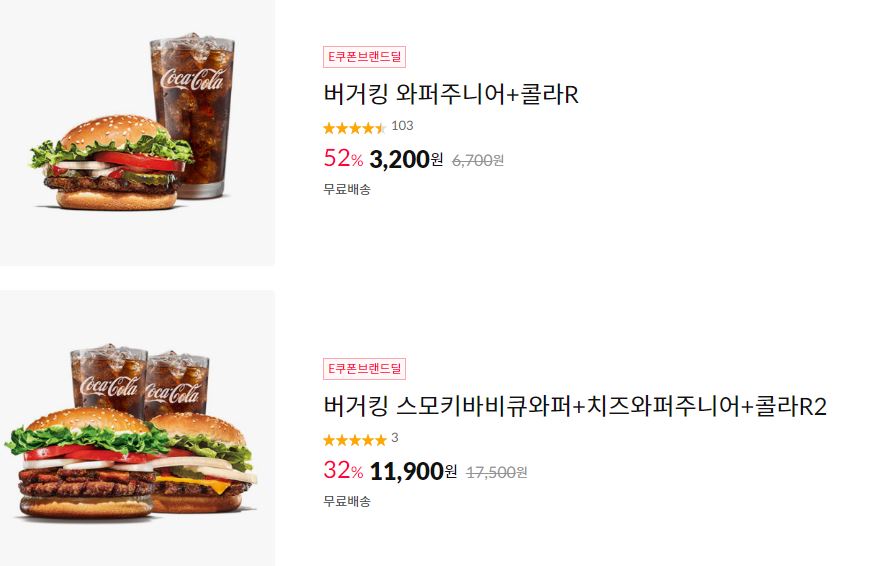 할인 브랜드 : 버거킹, 뚜레쥬르 등