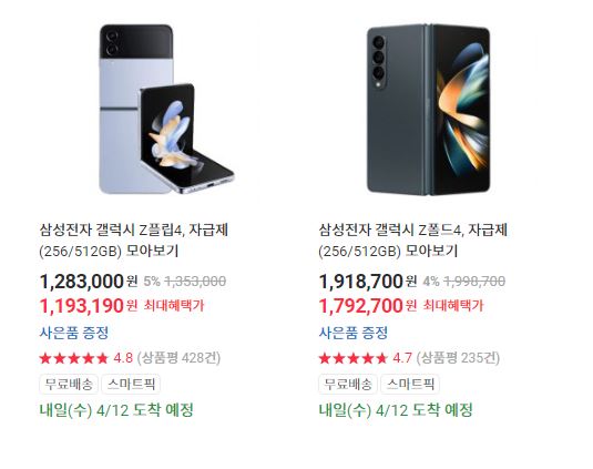 할인 품목 : S23, Z플립4, Z폴드4 등