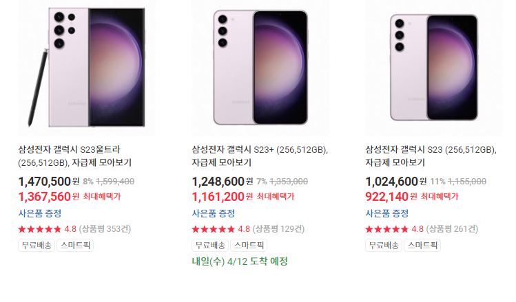 할인 품목 : S23, Z플립4, Z폴드4 등