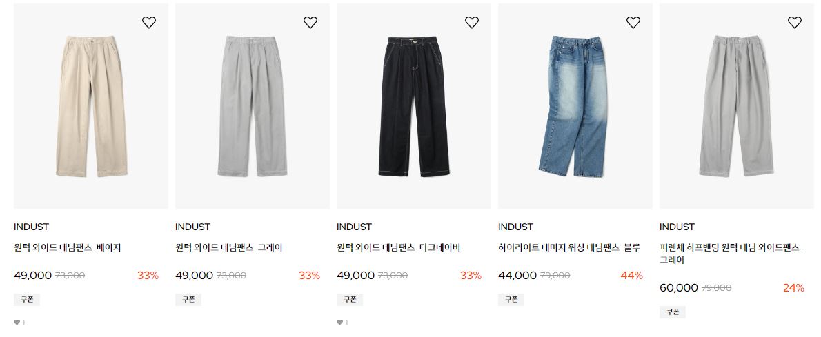 할인 품목 : 데님, 반바지 등