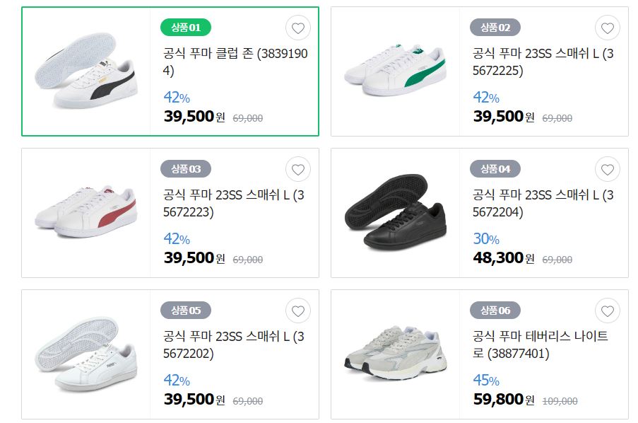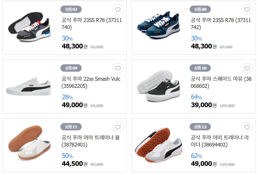 푸마 다양한 제품을 할인 판매하네요.