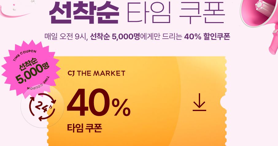 매일 오전 9시 선착순 40% 할인 쿠폰