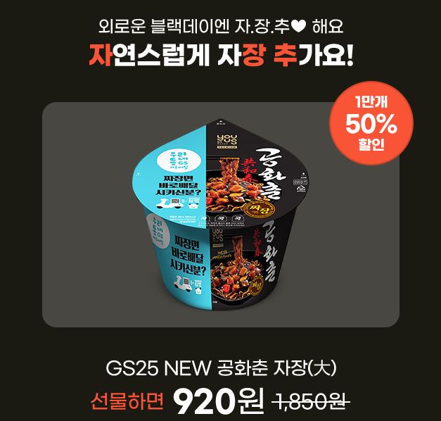 할인 품목 : GS25 공화춘 자장, 메가커피 아이스아메리카노 등