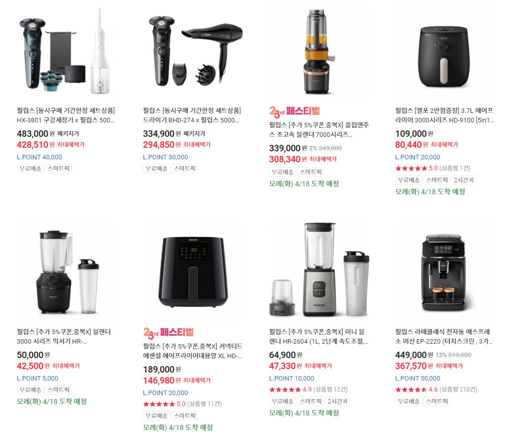 할인 품목 : 면도기, 믹서기, 에어프라이어 등