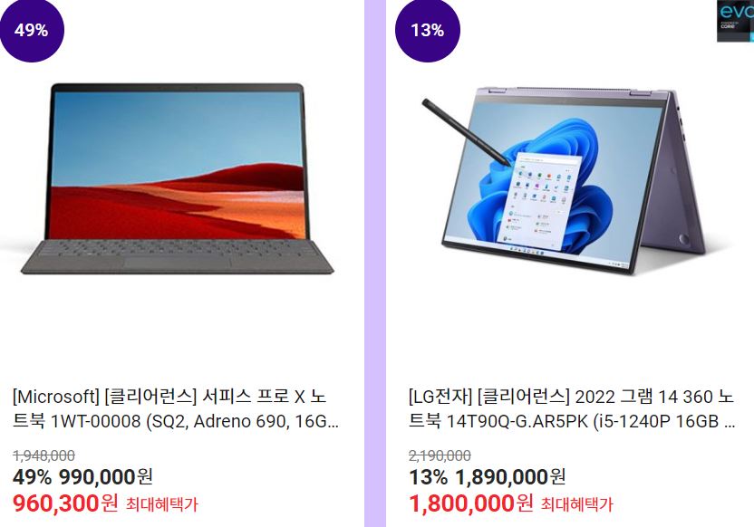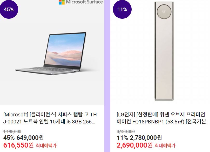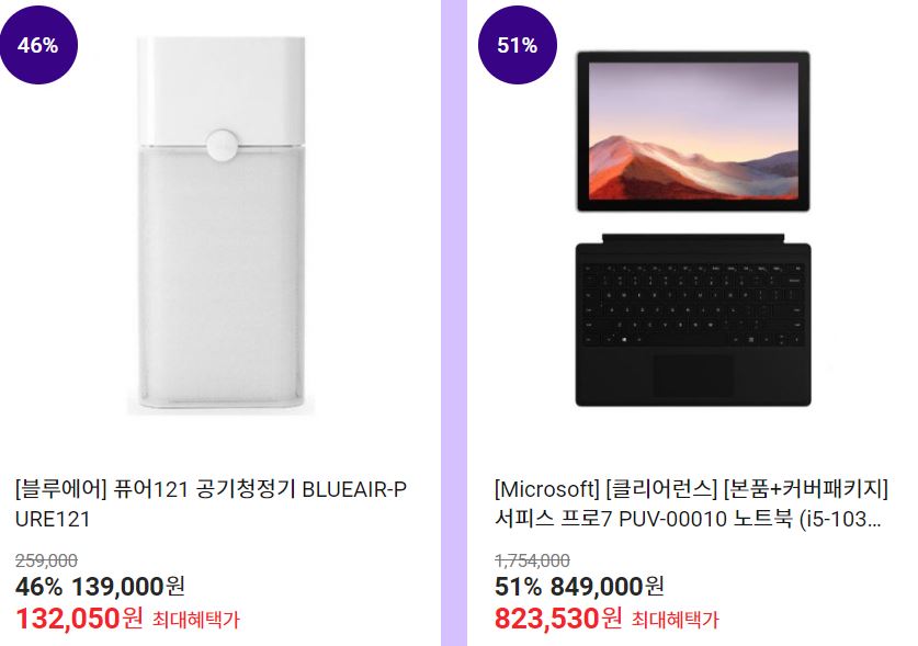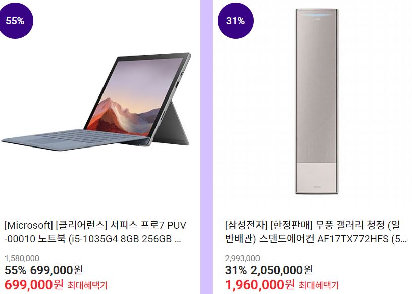 할인 품목 : 노트북, 공기청정기, 에어컨 등
