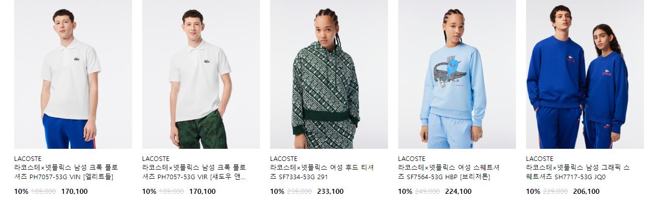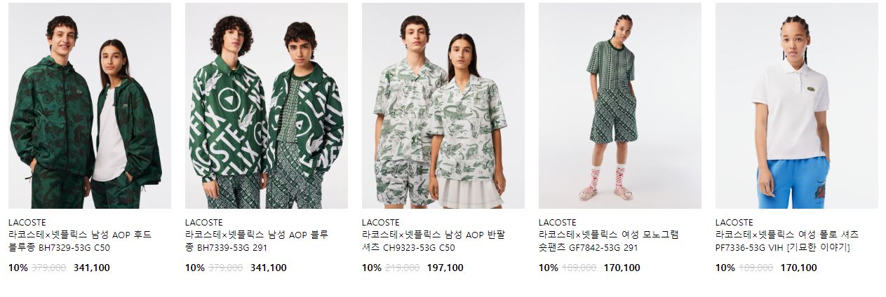 라코스테 X 넥플릭스 콜라보 할인 이벤트를 진행하네요.