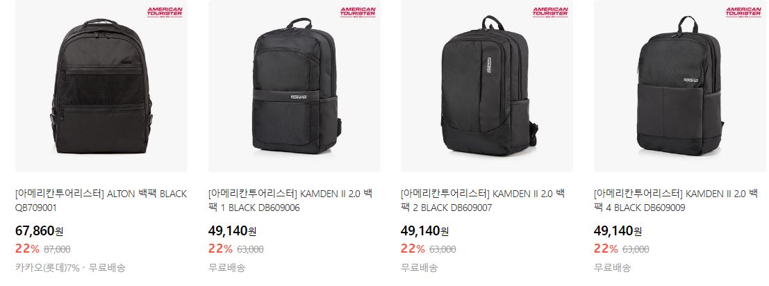 할인 품목 : 캐리어, 백팩 등