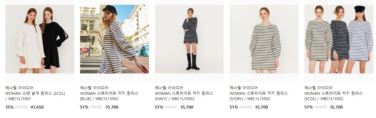 할인 품목 : 원피스, 티셔츠, 가디건 등