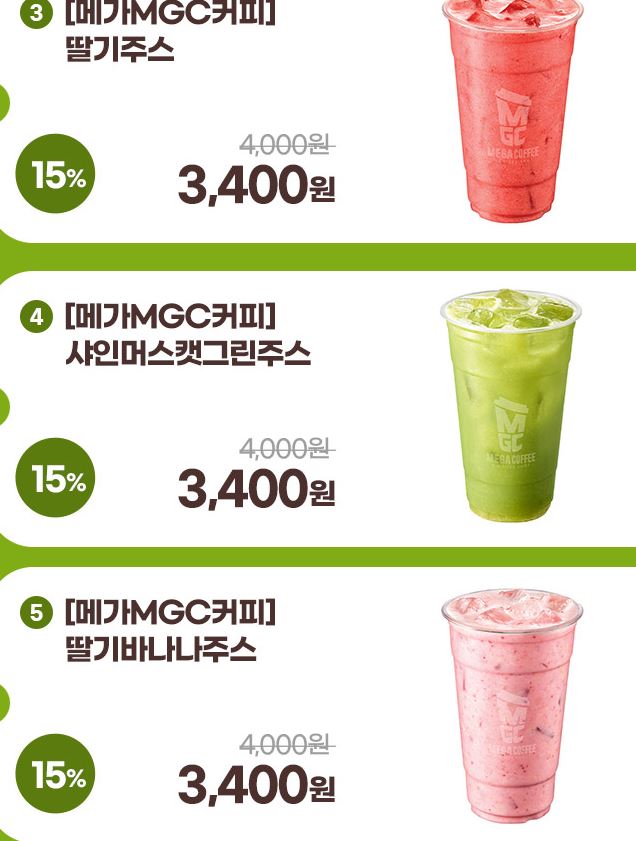 메가MGC커피 다양한 메뉴를 할인 판매하네요.