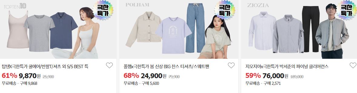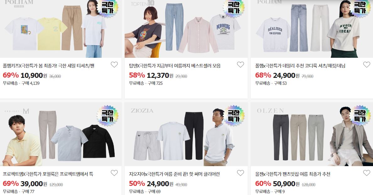 할인 품목 : 티셔츠, 팬츠, 자켓 등