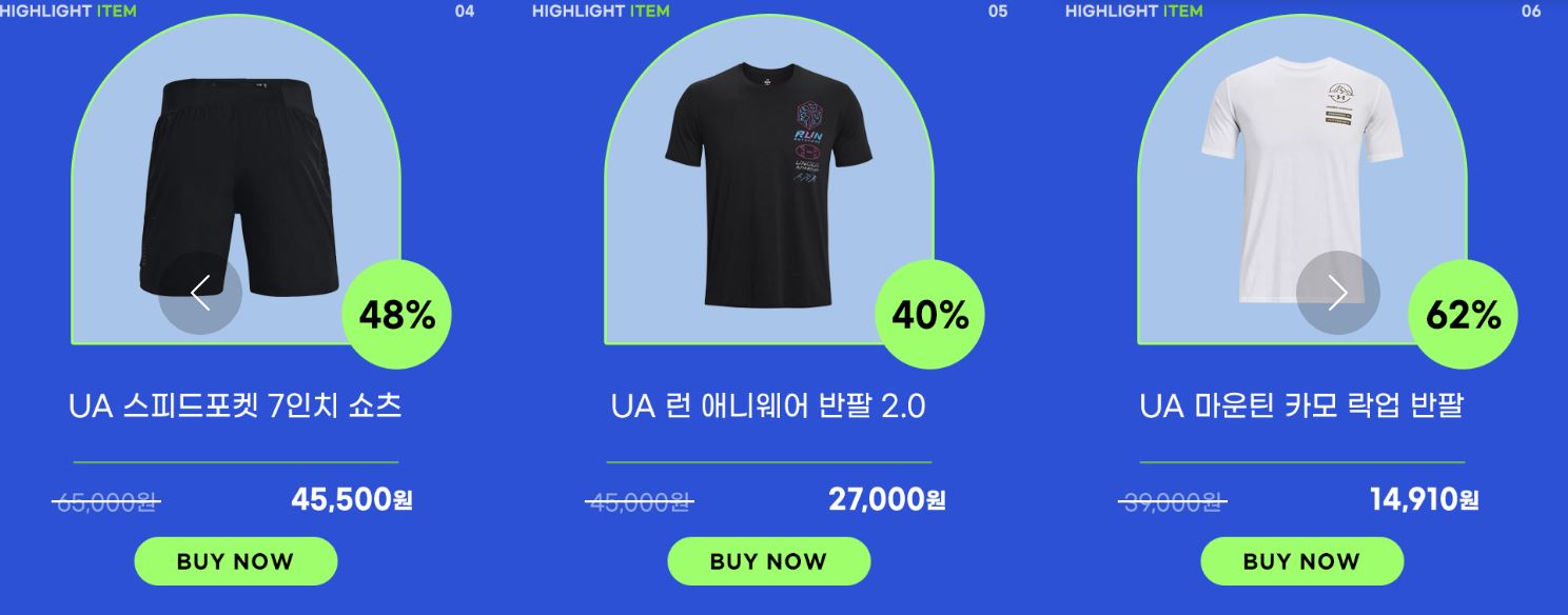 언더아머 다양한 제품을 할인 판매하네요.