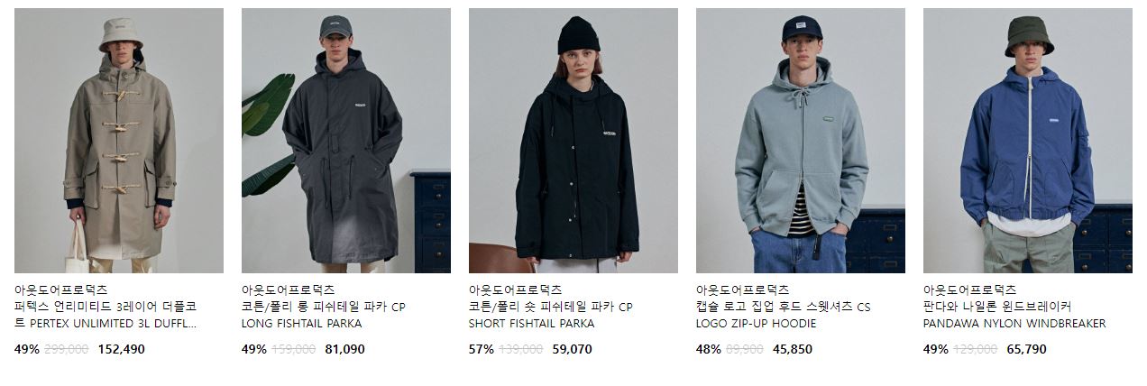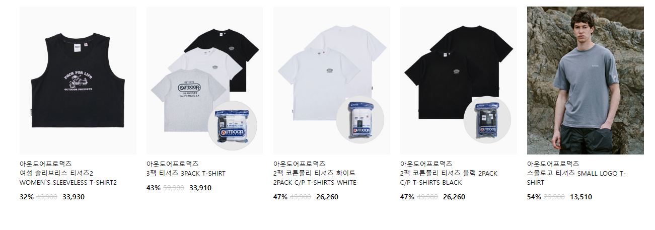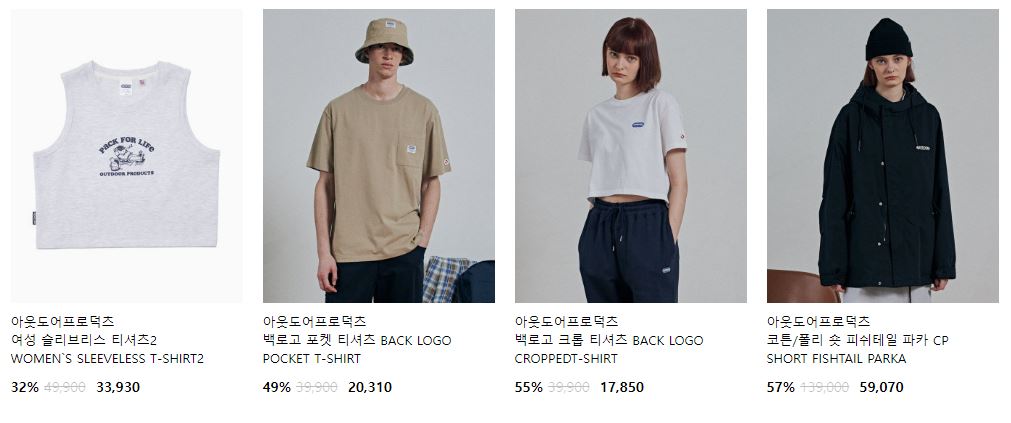 아웃도어 프로덕츠 다양한 제품을 할인 판매하네요.