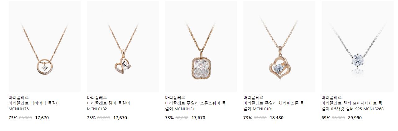 할인 품목 : 목걸이, 반지, 귀걸이 등