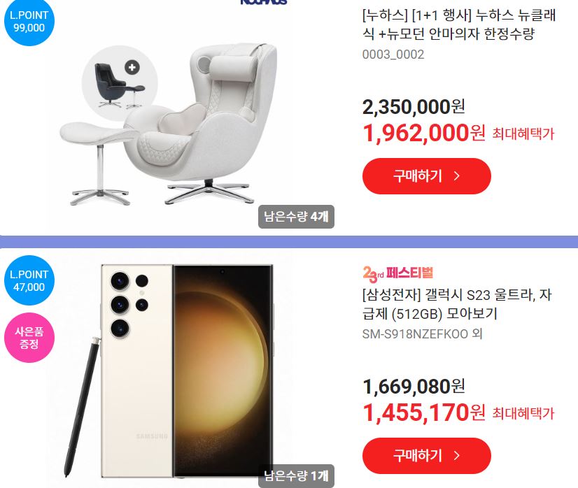 할인 품목 : 휴대폰, 노트북, 로봇청소기 등